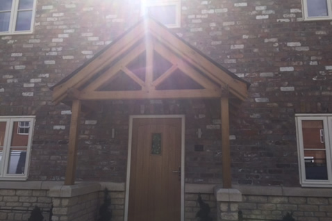 A selection of porches on the ongoing St Johns site in Lincoln. This group of porches are made from Green Oak and European Oak finished in Danish Oil.